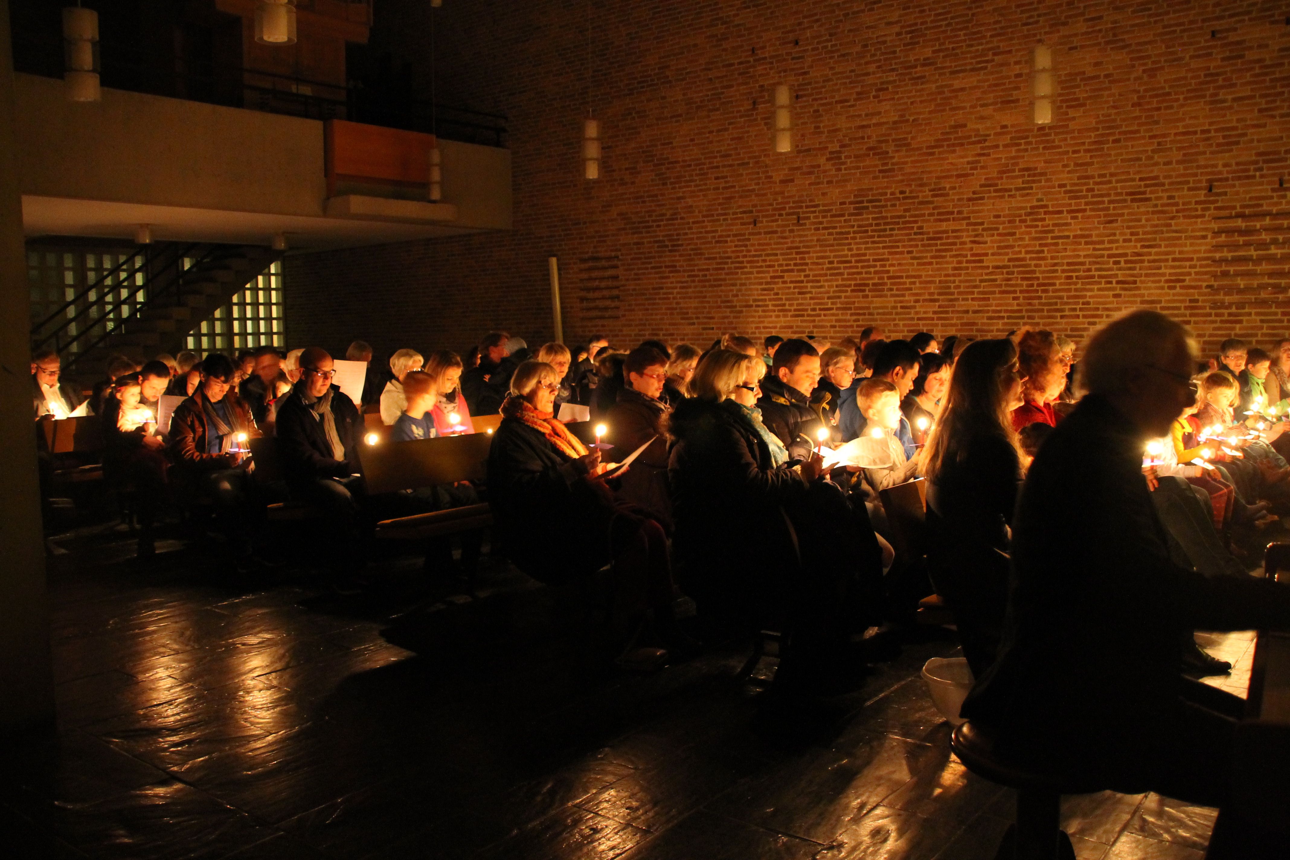 Für die Auftaktveranstaltung am Donnerstag war das Theater Metronom aus Hütthof engagiert, die ihren Klassiker „Dritter Engel, vierte Reihe und swinging christmas“ auf die Bühne bzw. vor den Altar brachten. Karin Schroeder begeisterte das Publikum mit ihrem Schauspiel und nur einer Brille in den vielen unterschiedlichen Rollen der „fürchterlichen Herdmann-Kinder“, der Annemarie Baumann (dritter Engel) und ihrer Mutter, die die scheinbar unlösbare Aufgabe hatte, trotz des Herdmann-Chaos das Krippenspiel zu einer ansehnlichen Aufführung zu bringen.