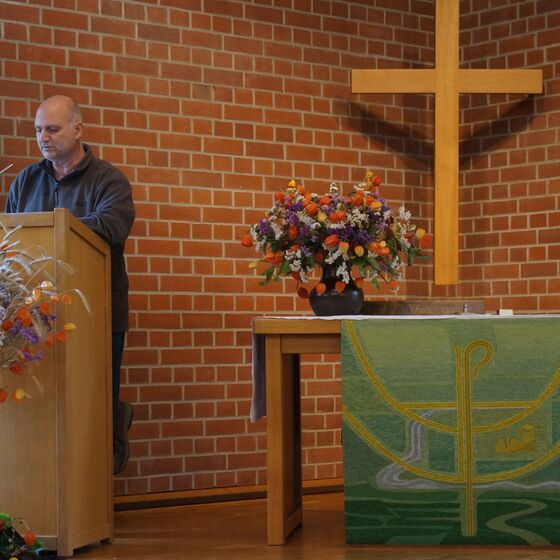 Obwohl das Wetter schon einen nass-windigen Vorgeschmack auf den November gab, hatte sich trotzdem eine stattliche Anzahl an Teilnehmern im Gottesdienstraum der Freien evangelischen Gemeinde in der Bergstraße eingefunden. Bei Kaffee, Tee und Knabbereien begrüßten uns der Gemeindeleiter Daniel Banse und Pastor Harald Köchling und berichteten aus dem Gemeindeleben und aktuellen Herausforderungen.